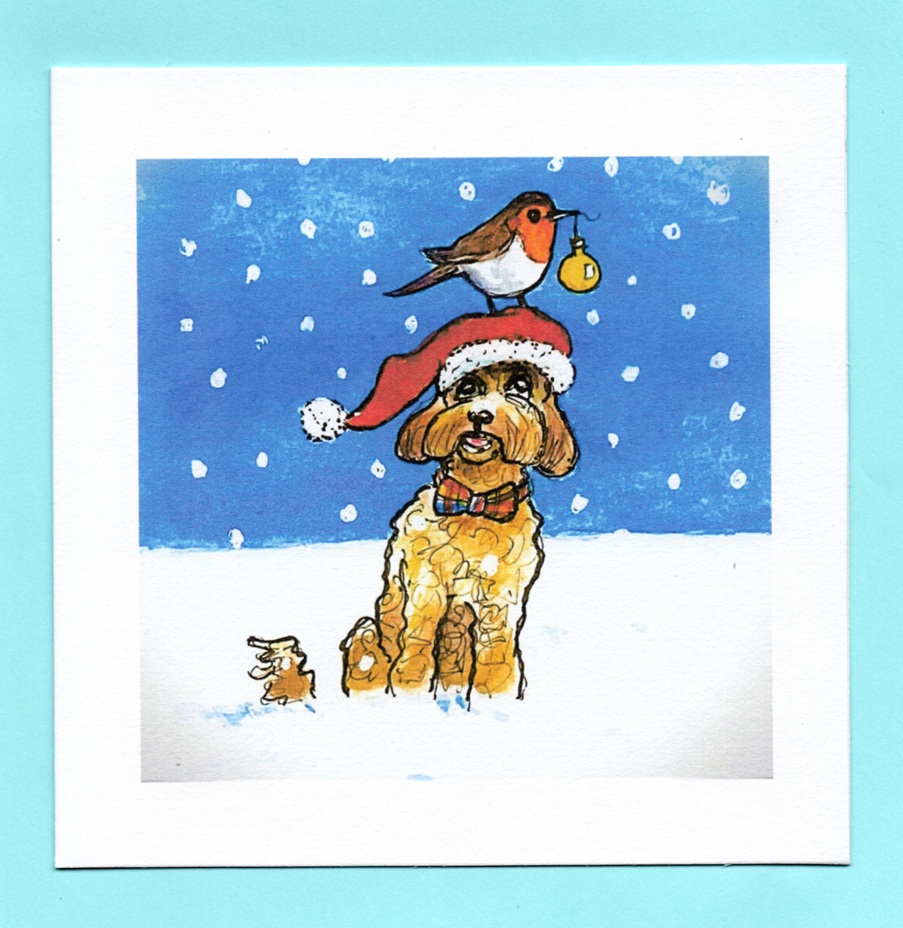 This lovely Christmas Card features Bertie with a Robin on his head!