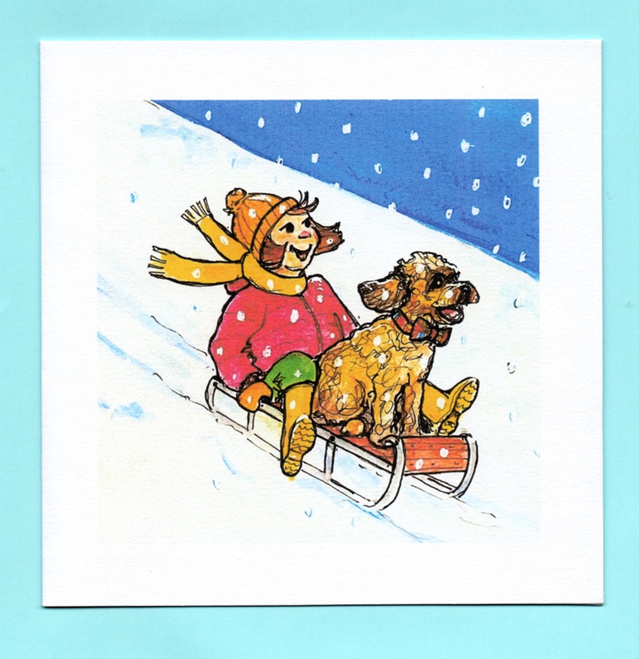 This lovely Christmas Card features Bertie, Ruby and a sledge!